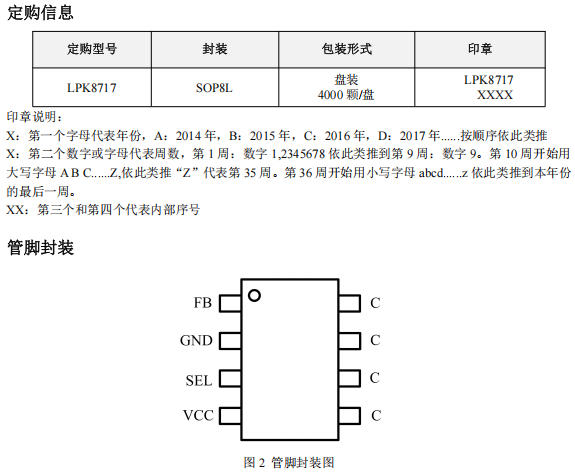LPK8717采用SOP-8封裝,5個(gè)有效引腳: