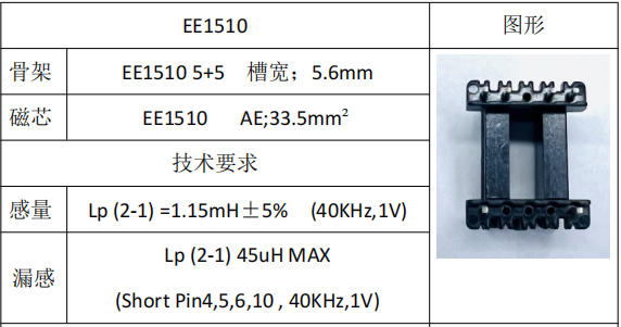 | 變壓器 | EE1510 5+5 | 感量1.15mH±5% |